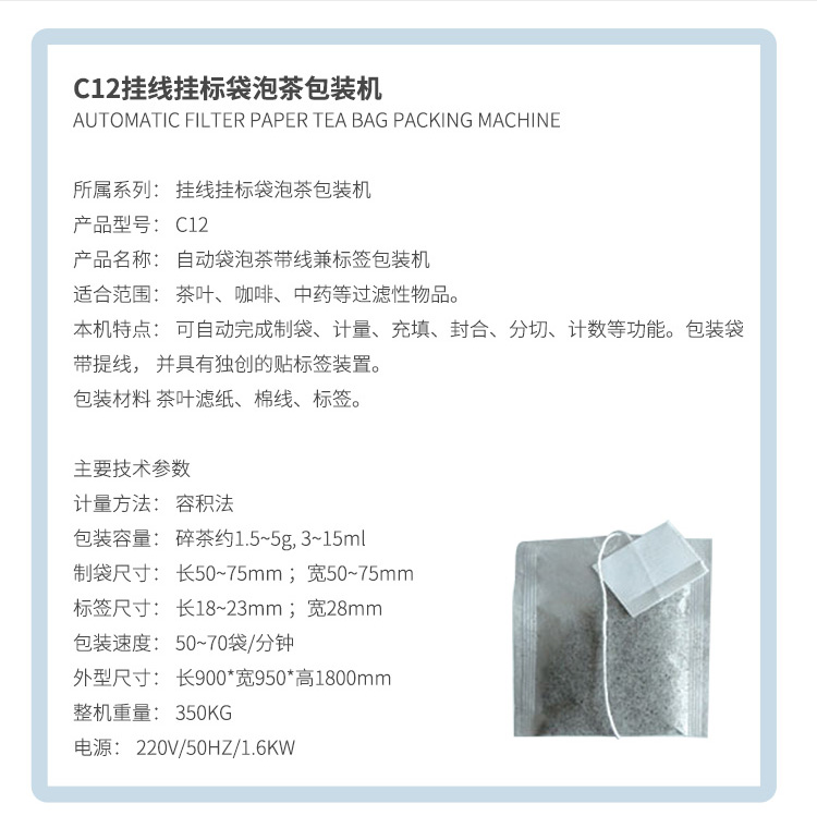 C12 全自動(dòng)掛線掛標(biāo)袋泡茶包裝機(jī)