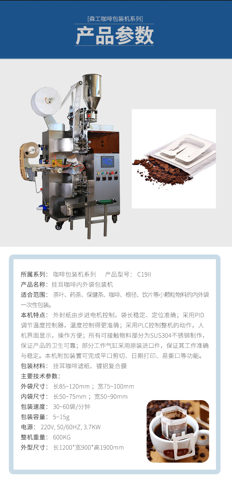 C19II 全自動熱封掛耳咖啡內(nèi)外袋包裝機(jī)