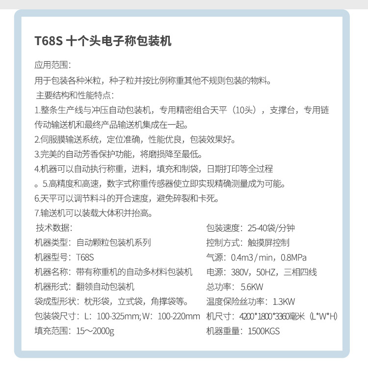 T68S 咖啡豆袋裝全自動電子稱包裝機(jī)