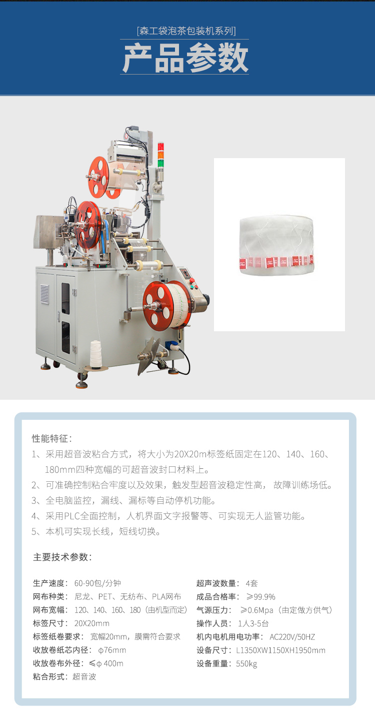 本機(jī)特點(diǎn): 1采用超音波粘合方式,將大小為20*20mm 標(biāo)簽紙固定在120、140、160、180mm四種寬幅的可超音波封口的材料上。
