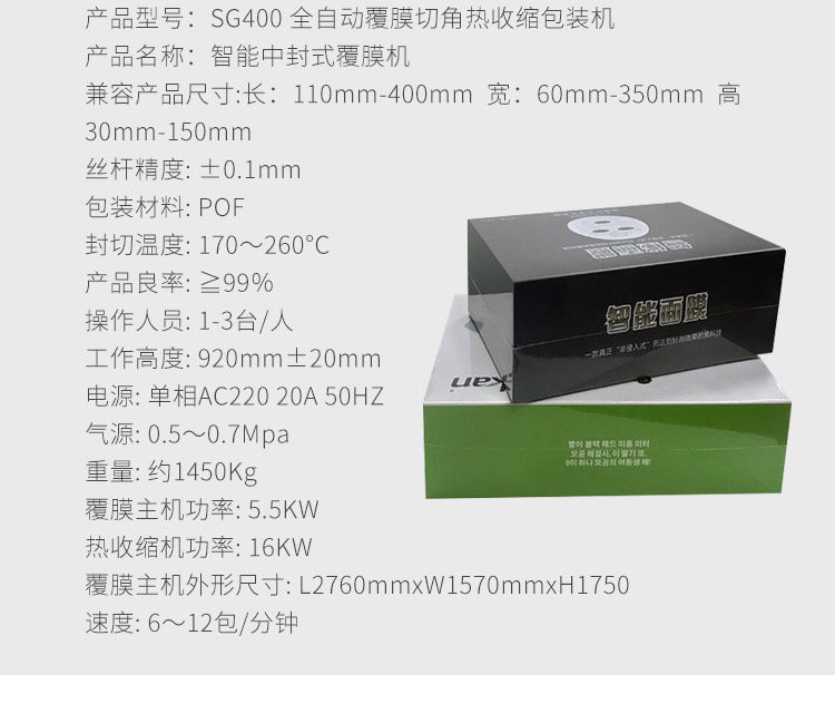 產(chǎn)品型號:SG400 全自動覆膜切角熱收縮包裝機(jī)