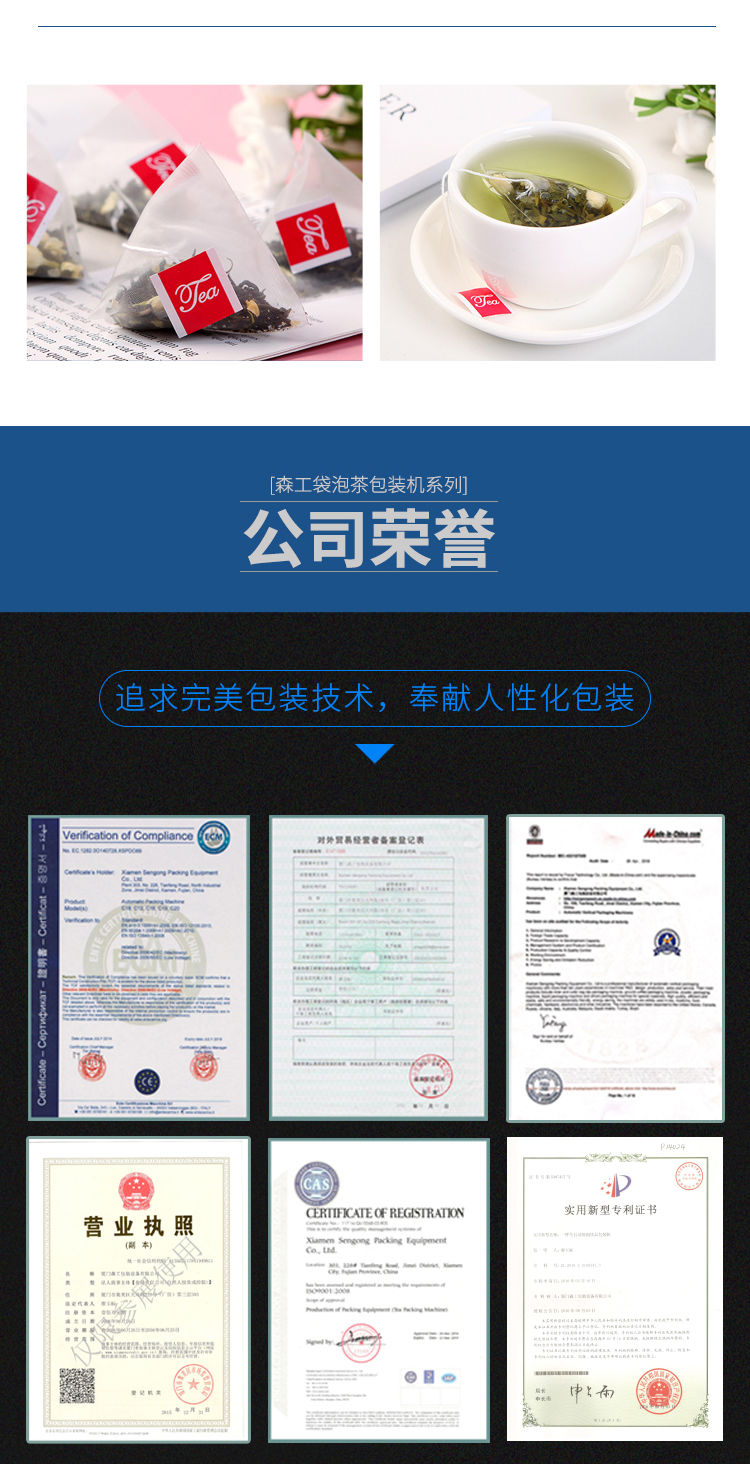 本機(jī)特點(diǎn): 尼龍三角包采用日本進(jìn)口的環(huán)保尼龍、無紡布材質(zhì),是經(jīng)過國家安全檢驗(yàn)的無毒、無細(xì)菌、耐熱的高質(zhì)感食品級(jí)濾材,它的封口采用了獨(dú)特的方法——超聲波無痕封口,緊密、衛(wèi)生、安全,減少了多余的封邊寬度,完全不浪費(fèi)一絲濾材。
